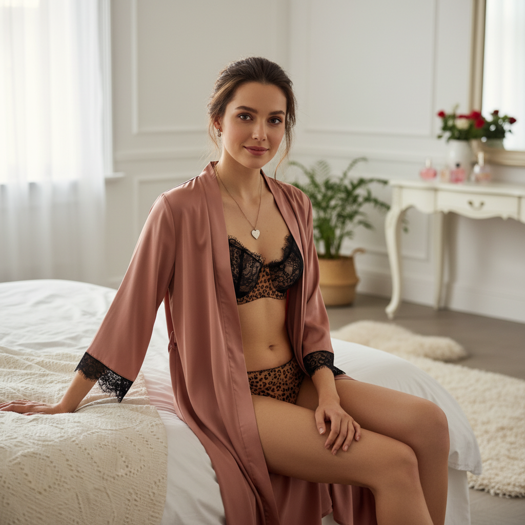 Coordinated 2-Piece Set: Includes the lace-accented balconette bra and matching leopard print panties.