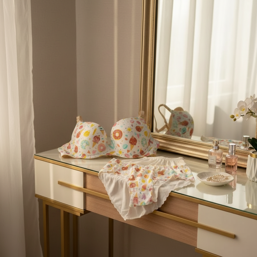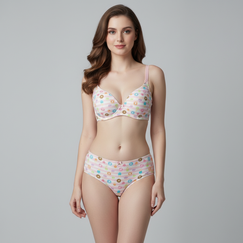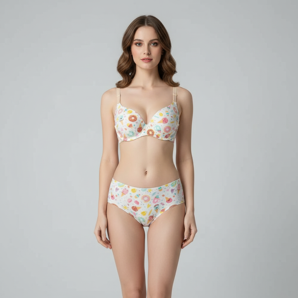 Add a playful and sweet touch to your collection with our Donut Print Lingerie Set. This charming two-piece set features a whimsical "sweet treats" pattern, including colorful donuts and ice cream cones sprinkled over a crisp white base. Designed for everyday comfort without sacrificing style, this set is perfect for those who love a fun, youthful, and vibrant aesthetic.