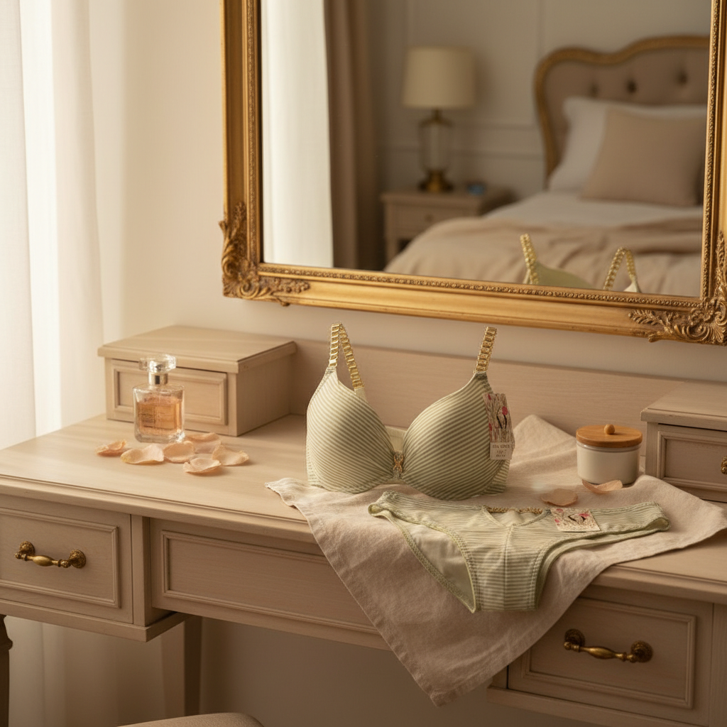 Coordinated 2-Piece Set: Includes the shimmer-strap contour bra and the matching high-leg cutout panties.