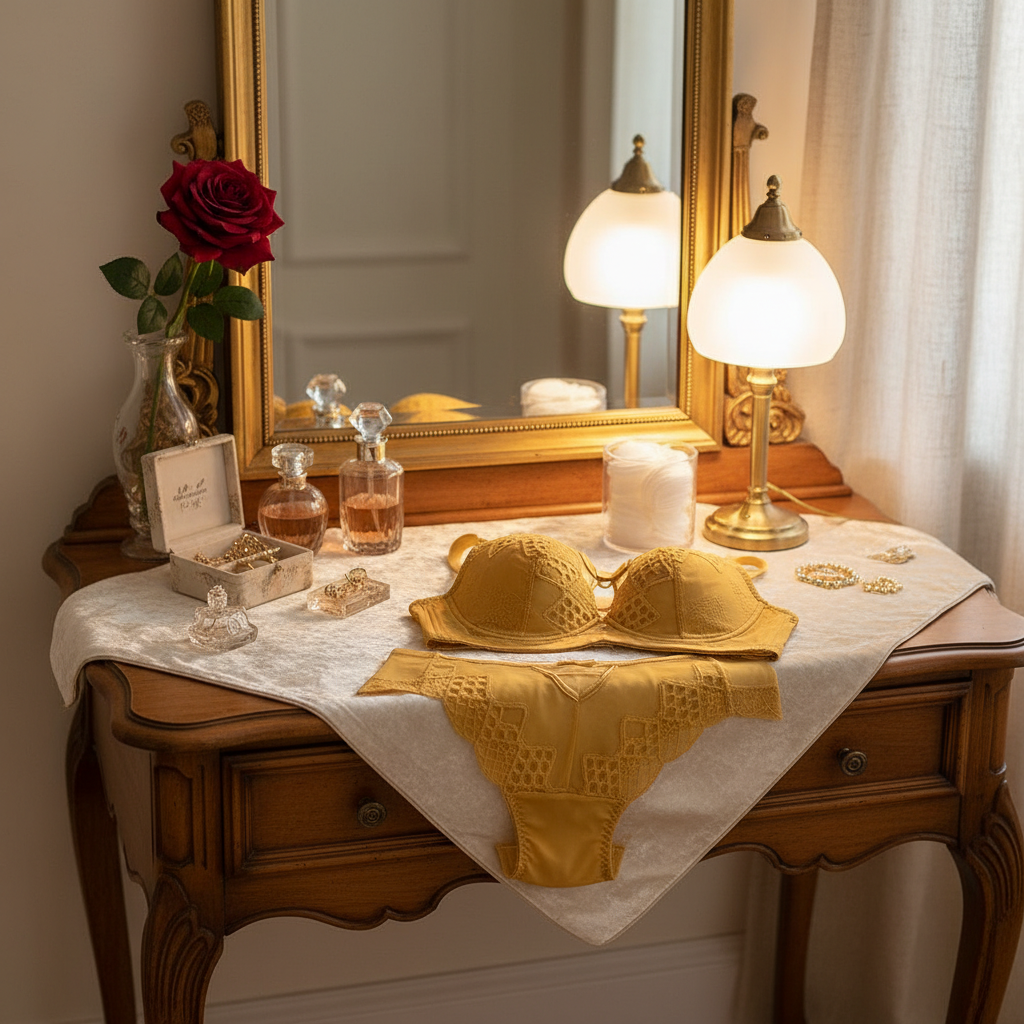 Decorative Ribbon Accents: Finished with delicate satin bows at the center of the bra and the waistband of the panties.